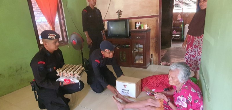 Brimob Kompi 2 Batalyon B Laksanakan Bansos Bagi Masyarakat Kurang Mampu