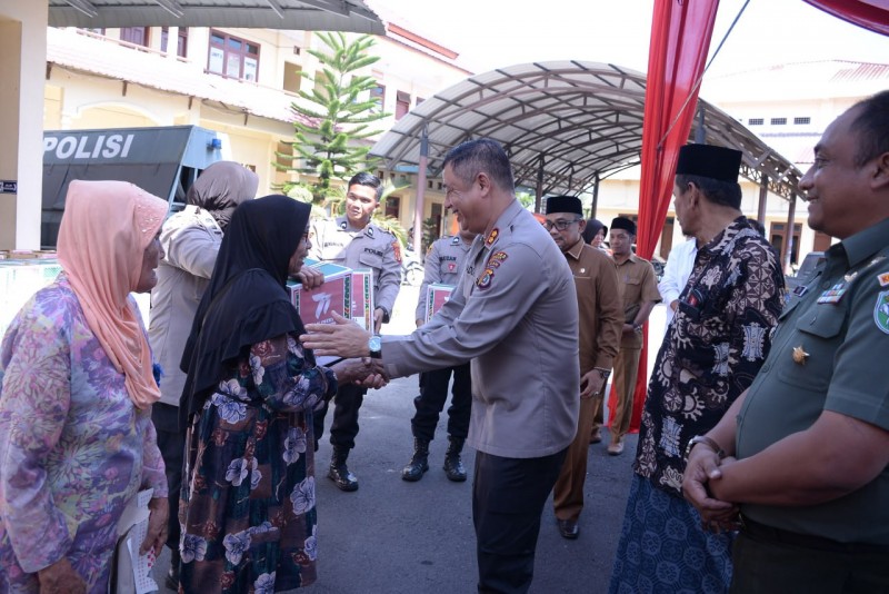Dalam rangka menyambut Hari Bhayangkara ke-77, Polres Langsa melaksanakan kegiatan bakti sosial sebanyak 500 paket bantuan sosial
