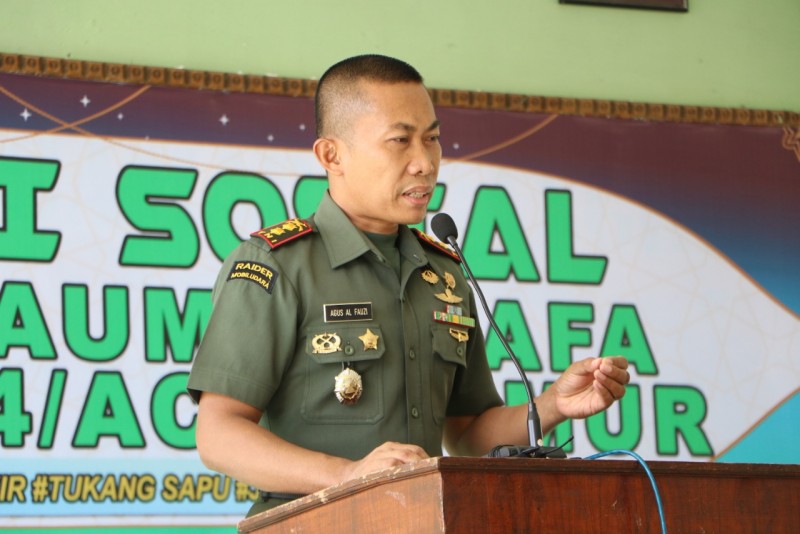 Dalam pembagian paket sembako ini, Dandim 0104/Atim Letkol Inf Agus Al Fauzi, S.I.P., M.I.Pol. bersama Ketua Persit Kartika Chandra Kirana Cabang XXI Dim 0104 Atim Koorcab Rem 011 PD Iskandar Muda yang juga didampingi para Perwira Staf dan pengurus Cabang Persit KCK Cabang XXI Dim 0104 Atim, menyerahkan langsung kepada warga hadir di acara Bhakti Sosial Kepada Kaum Dhuafa Kodim 0104/Aceh Timur, di Aula Serbaguna Makodim, Gp. Payabujok Seuleumak, Kecamatan Langsa Baro, Kota Langsa.